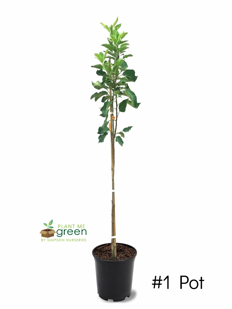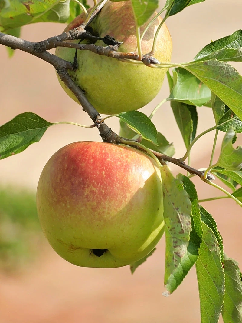 Suncrisp® is a late-season, high quality, eating apple, with an excellent pedigree. It has a crisp flesh and finely-balanced and interesting sweet-sharp flavors. There is sometimes a slight aniseed note, which is often the hallmark of more sophisticated apples. The fruit color is golden with an orange blush. This dual-purpose apple matures approximately one-three weeks after Golden Delicious, has a sweet, spicy flavor and typically stores up to six months. The tree has medium vigor with an upright growth habit. Thinning of Suncrisp® decreases the tendency toward biennial bearing. Site selection is critical as this variety is prone to russet. Good resistance to apple scab, susceptible to fireblight.