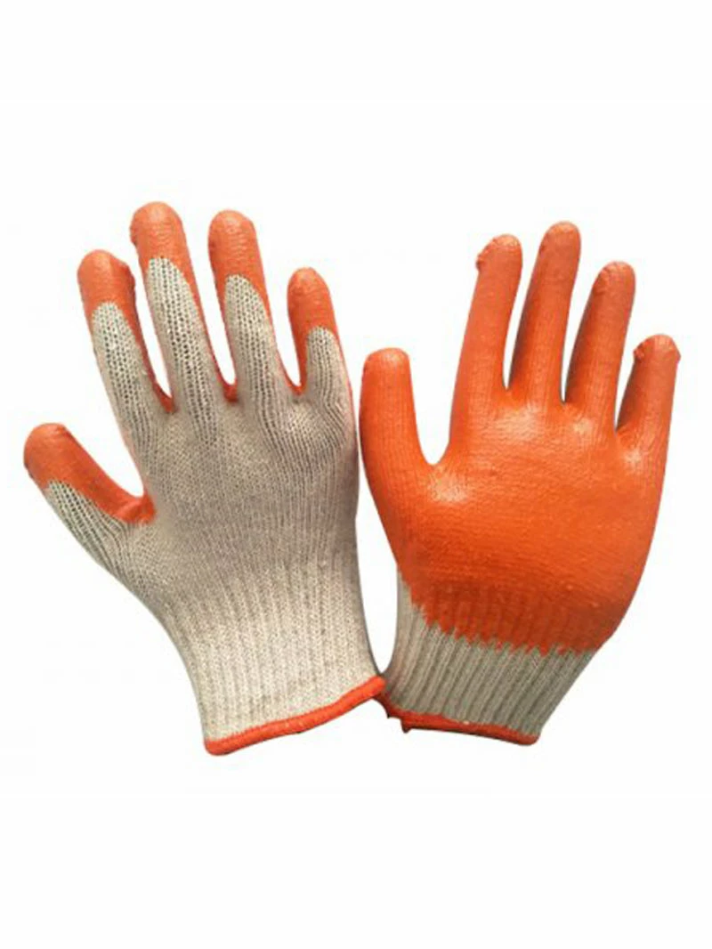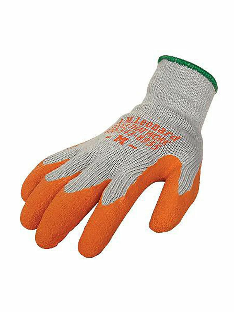 Knit cotton, latex palm glove in orange. Flexible for maximum grip!