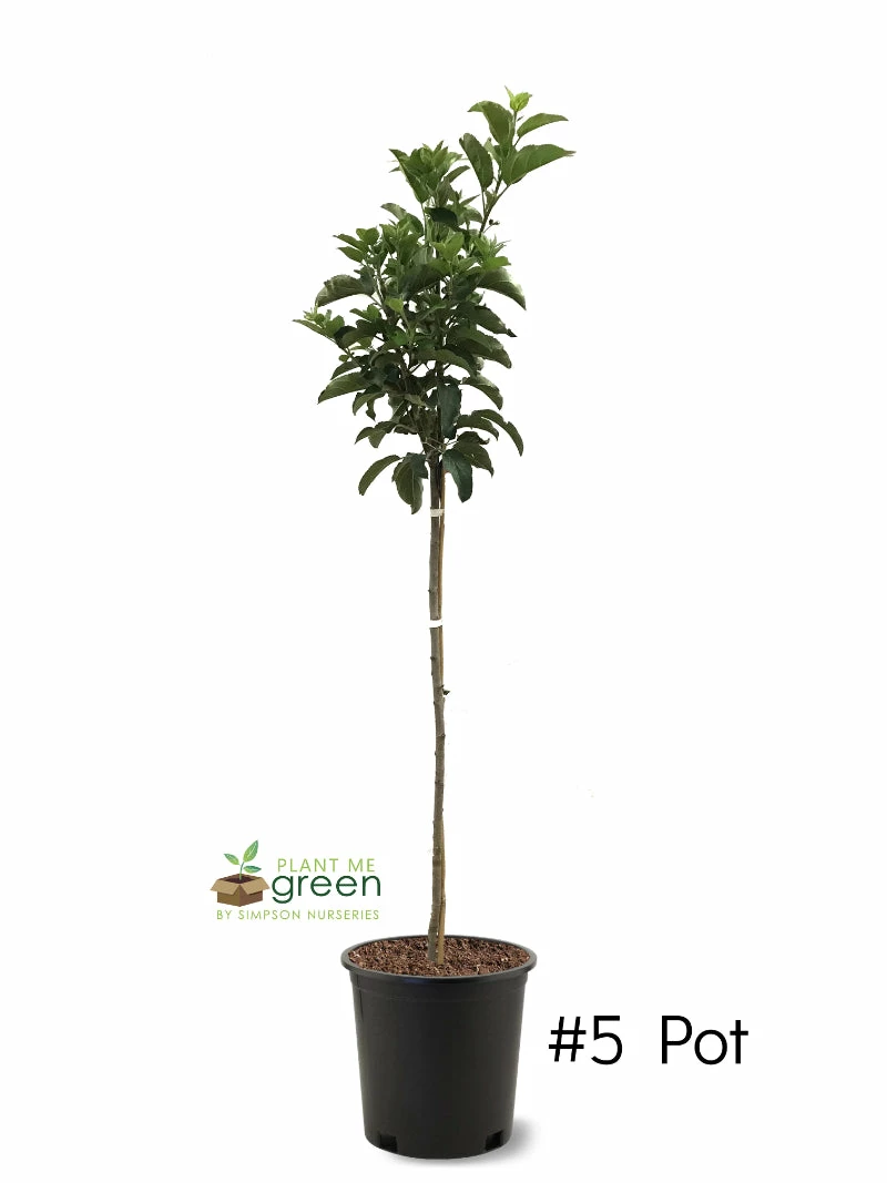 Gala apples are crisp, sweet apples covered in a thin yellow to orange skin, highlighted with pink to red stripes that vary in hue dependent upon the apples maturity. Their dense flesh is creamy yellow, offering a mildly sweet flavor and floral aroma. Gala’s that are allowed to reach the peak of their sweetness on the tree will have a deeper red hue and a slightly sweeter flavor. They are small to medium in size and ripen in August. At maturity, the Gala apple reaches a height and width of 15-20 feet. They are excellent for eating fresh, salads, sauce, pies, baking, and freezing. Gala apples require 500 chill hours and require a pollinator such as Granny Smith, Red Delicious, Fuji, and Jonathan.