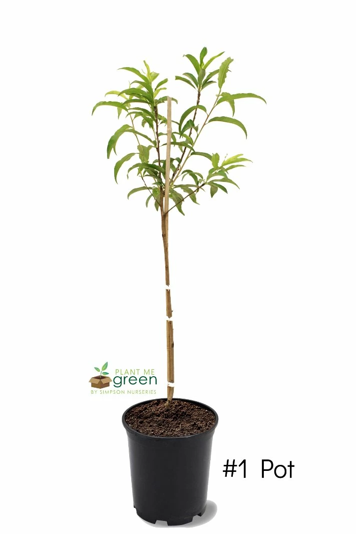 Flordaking is a vigorous grower that produces large, 2 to 2 1/2 inch, firm peaches in the early May. The Flordaking peaches are clingstone, meaning that the flesh tends to cling to the pit. These trees grow to a mature height of 15 to 25 feet. As such, they are also sweet and can be eaten fresh or are a great choice for desserts. The peaches are yellow with a red blush and yellow flesh. The tree requires 450 chill hours and is a self-pollinator. It is hardy in USDA Zones 7-9.