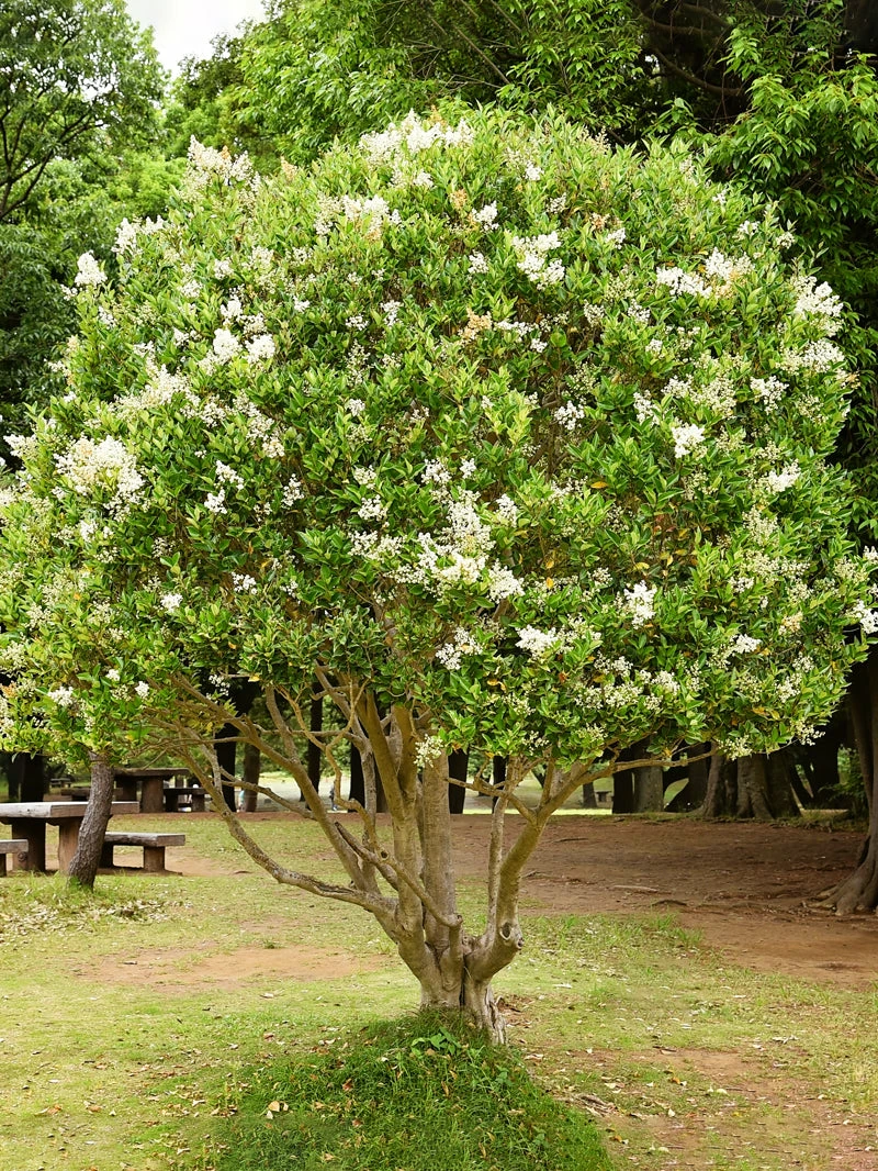 The Waxleaf Ligustrum is a large multi-stemmed, broadleaf evergreen shrub that maintains a very dense, symmetrical and rounded canopy. Uses in the landscape range from large shrub, privacy hedge (when mass planted), or use as an evergreen ornamental tree. Waxleaf Ligustrums have 2 to 3 inch long leaves that are stiff and leathery with a glossy deep green color on top and a lighter silver-gray color underside. Large clusters of white flowers will bloom from mid-summer to autumn. Each cluster that is produced has hundreds of white flowers and each cluster can range from 6-12 inches long. In the summer Waxleaf Ligustrums produce small green berries that turn blue to purple-black in the fall. Once established, it is drought tolerant and has a medium salt tolerance. Growth rate is approximately 2 feet per year; at maturity they can reach a height and width between 10-15+ feet.