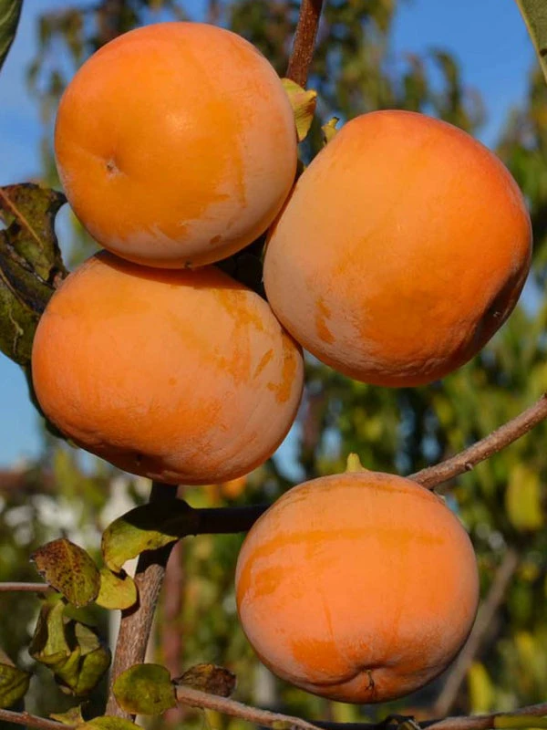 Rosseyanka is a truly amazing blend between Asian and American Persimmons. Combining traits of both fruits, now the taste of Kaki persimmons can be enjoyed in the North. More of the American parent is evident in leaf and tree form. Fruit tastes like a blend of soft Asian persimmon and ripe native persimmon. Fruits are seedless! The candy like orange fruit has a rich flavor enjoyed into the winter. Good orange leaf color in the fall. Fruit size is larger than native persimmon, approximately 2-3 inches. Must be soft to eat. Fruits will “wrinkle” when ripe. Height 15′-20′. We graft the Rosseyanka onto native American persimmon root stock.